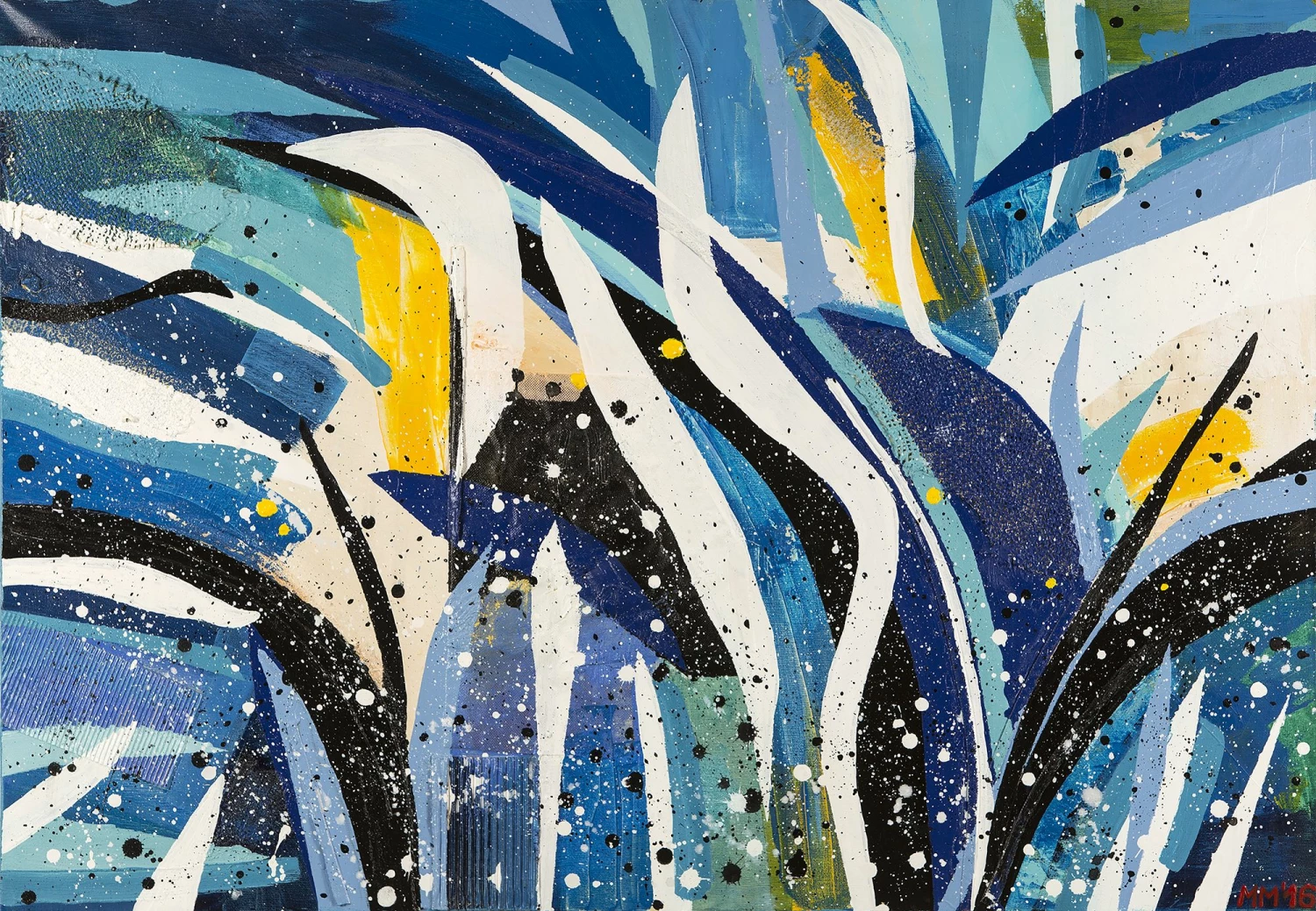 La composizione di forme e linee dona ritmo ed equilibrio alle opere, mentre il colore le carica di energia e diventa il mezzo attraverso cui l’artista esprime emozioni e racconta storie.
