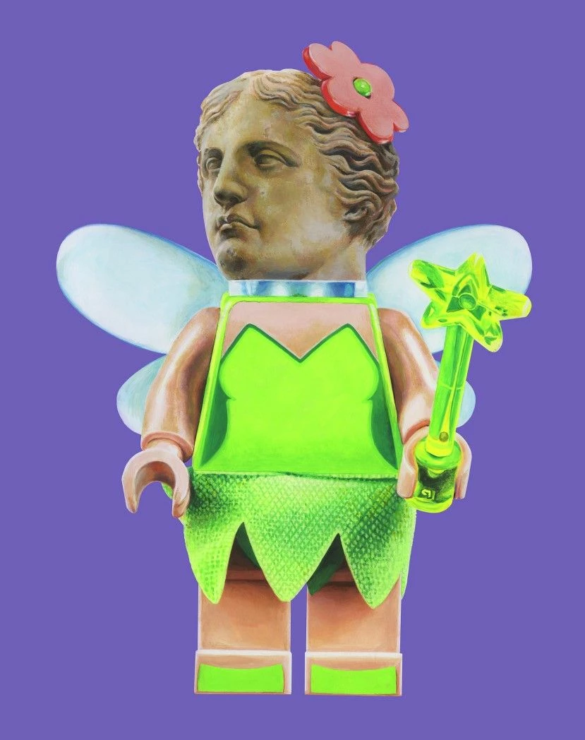 In questo caso il soggetto di partenza è la celebre Venere di Milo, statua greca simbolo della cultura classica. Molina la rappresenta però come personaggio Lego, con corpo di fata. L’effetto che ne risulta è ironico e surreale al tempo stesso ed evidenzia il contrasto tra la classicità del modello e il carattere Pop dell’omino Lego.