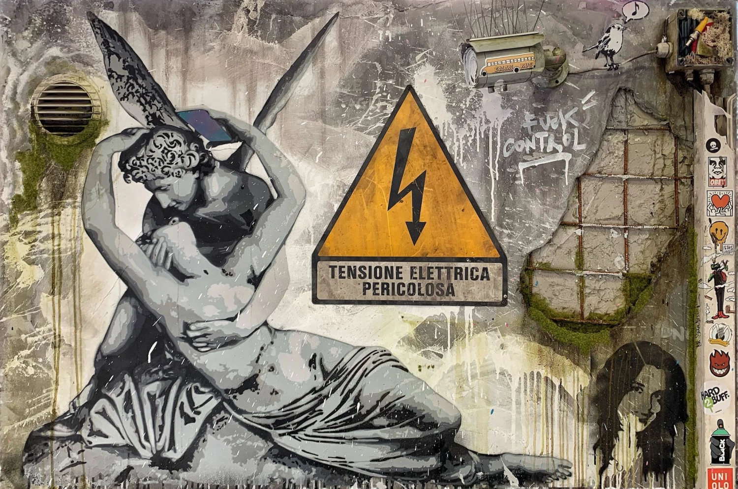 Anche in questo caso, l’artista Mr. Savethewall inserisce nell’opera un messaggio allo stesso tempo ironico e critico. L’opera raffigura, infatti, i due protagonisti di Amore e Psiche di Canova intenti però a scattarsi un selfie, simbolo emblematico del rapporto odierno con gli smartphone.