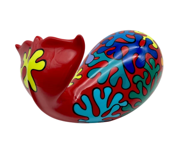 Dalle forme morbide e arrotondate tipiche di Arnaud, l’opera rappresenta una balena, caratterizzata da colori accesi e vivaci.