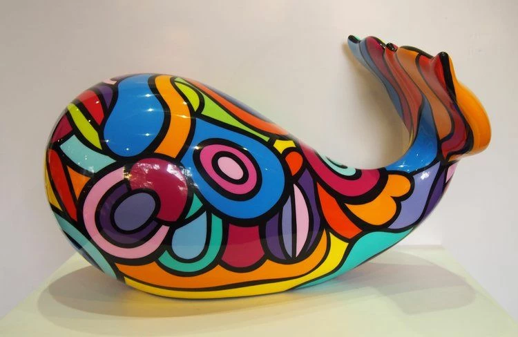 I colori cangianti e le incantevoli fantasie sono il segno distintivo delle opere di Arnaud Nazare-Aga. Questa coloratissima scultura Willy, fa parte della collezione Whales, sicuramente una delle più apprezzate e conosciute dell’artista.