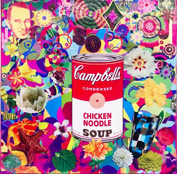 Spicca al centro dell’opera la lattina più famosa del mondo, la Campbell’s Soup omaggio al re del pop Andy Warhol. In questo caso il richiamo è direttamente al mondo stesso dell’arte, anche se la Campbell’s Soup è talmente celebre da varcare i confini di questo mondo.